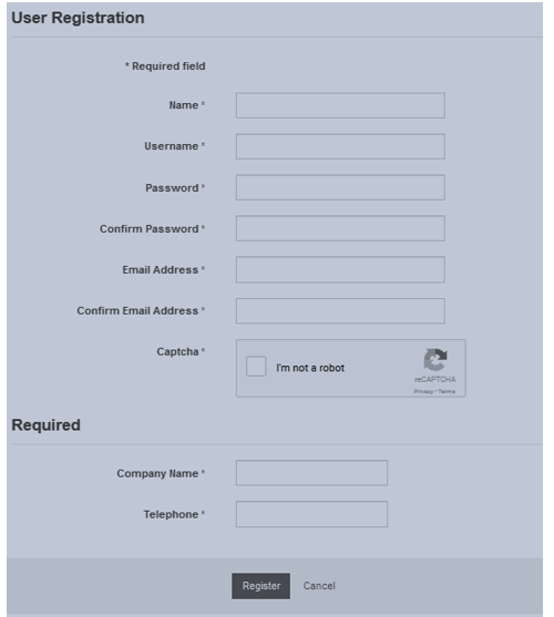 It is very important that you fill out all fields accurately and completely including the Company Name and Telephone number fields.  This information is kept confidential but can be useful if one of our website administrators needs to contact you to assist with your use of the web site.  It is also an important way for the administrators to verify that you are the person you claim when you request access to your documents.